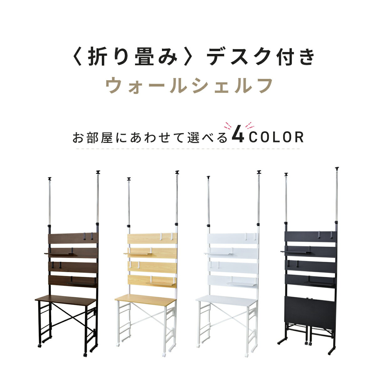 【クーポン10%オフ 9/1 0時-24時】壁面収納 幅80cm 折りたたみテーブル付き S字フック4個 可動棚2枚 付き 折りたたみデスク パソコンデスク つっぱり 突っ張り パーテーション 棚 突っ張り棚 ウォールシェルフ 間仕切り カロンデスク
