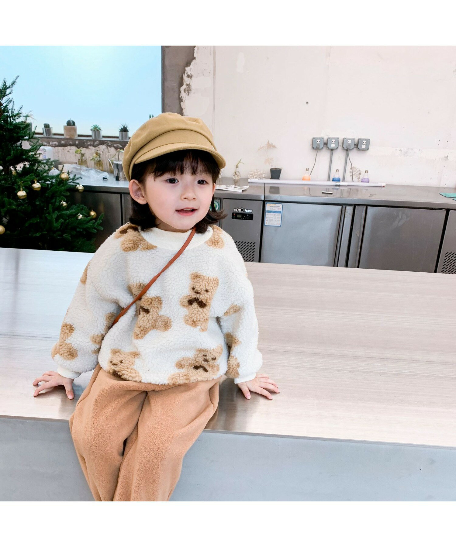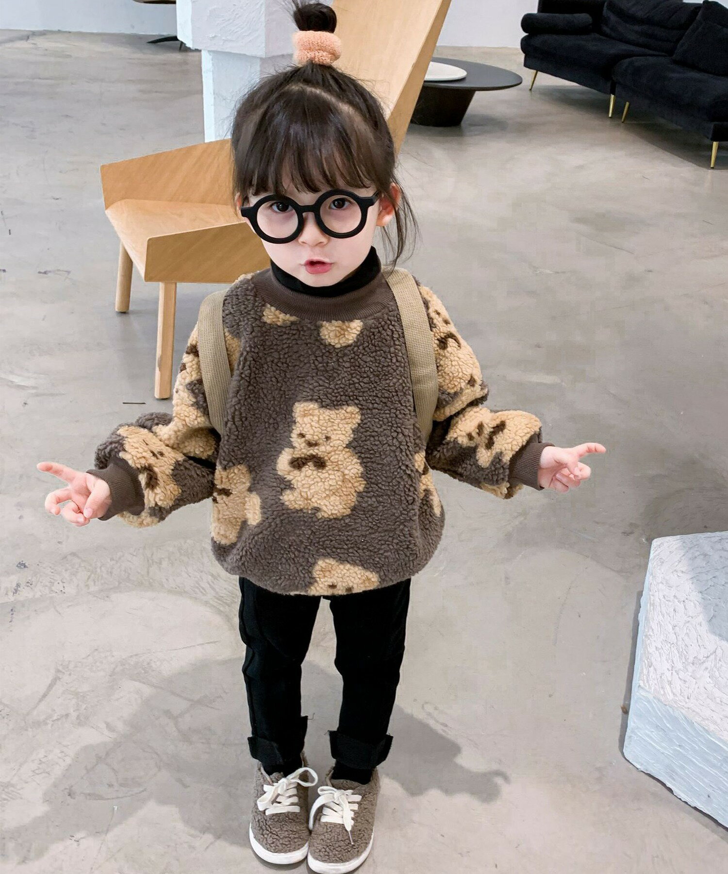 【 ベアイラストボアトップス/ 裏地もあったか生地 】 首周りもあったかハイネック。