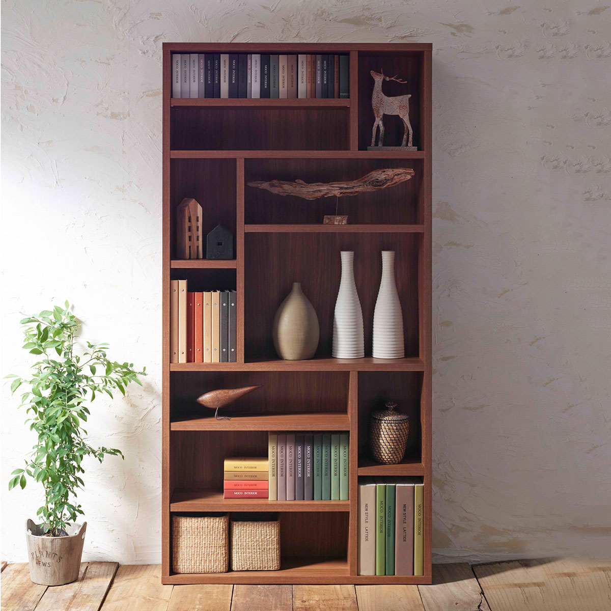 本棚 おしゃれ 北欧 安い 収納 整理 棚 ラック 大容量 壁一面 シェルフ 書棚 a4対応 薄型 スリム コミック 文庫本 漫画 マンガ cd dvd オープン リビング 約 幅90