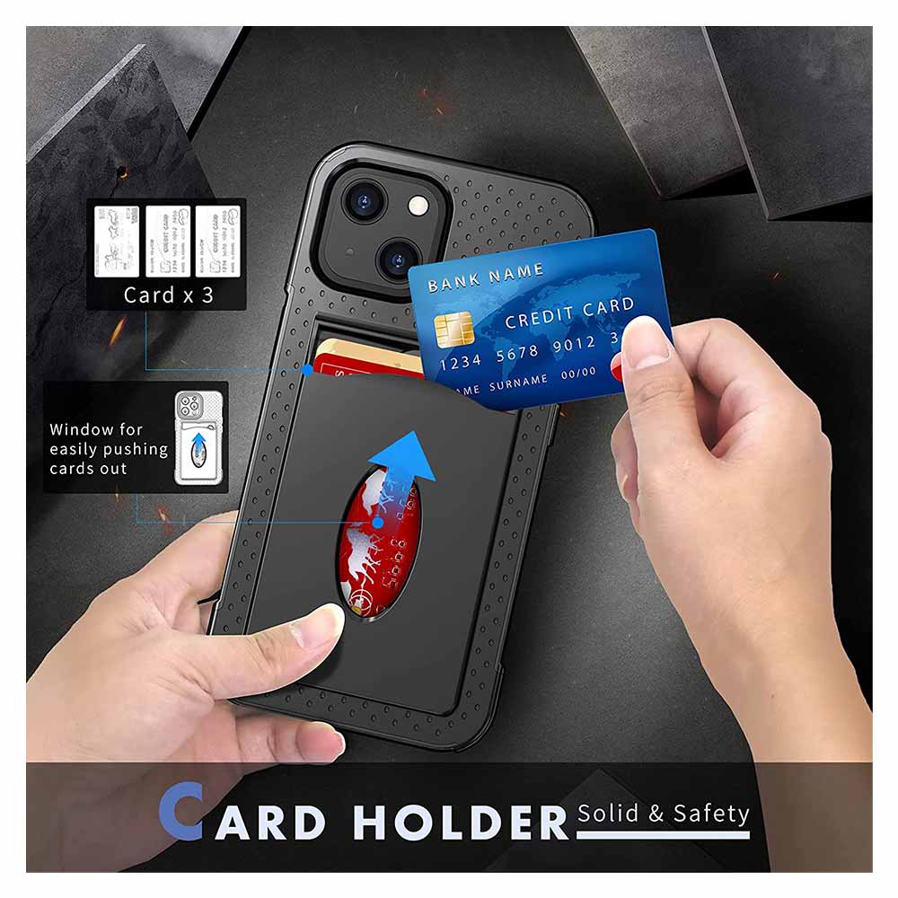 即納 iPhone 13/13Pro/13ProMax/13mini ケース カバー 耐衝撃 背面 カード収納 ブラック アイフォンケース