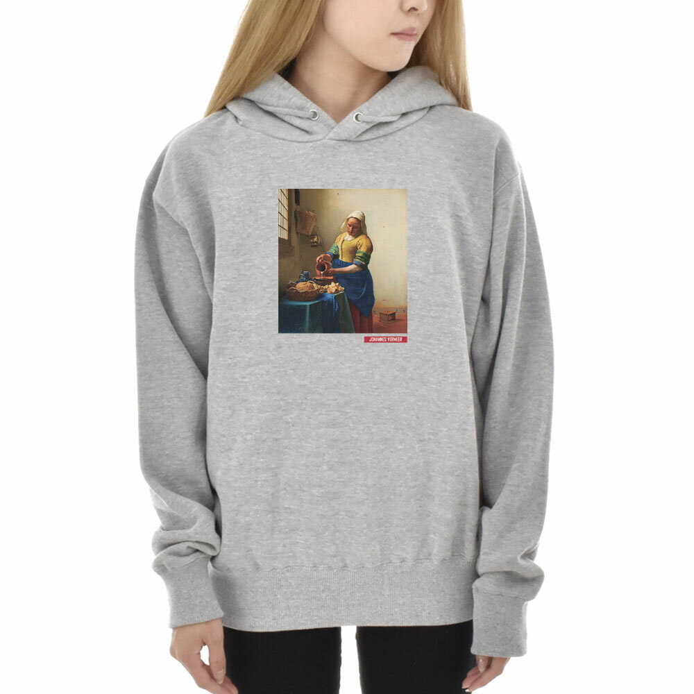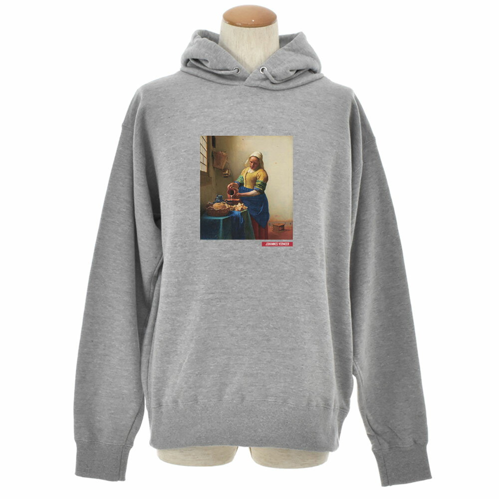 【2点以上購入でお得なクーポン】【アートパーカー】ヨハネス・フェルメール パーカー 牛乳を注ぐ女 Life is ART ライフ イズ アート スウェットパーカー スエットパーカー メンズ レディース 大きいサイズ ビック おしゃれ 絵画 名画 S M L XL XXL グレー 灰 ブランド