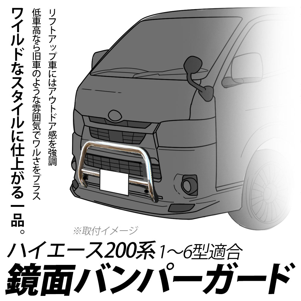 ハイエース 200系 バンパーガード ステンレス 標準ボディ カンガルーバー ドレスアップ アクセサリー グリルガード アウトドア フロントバンパー