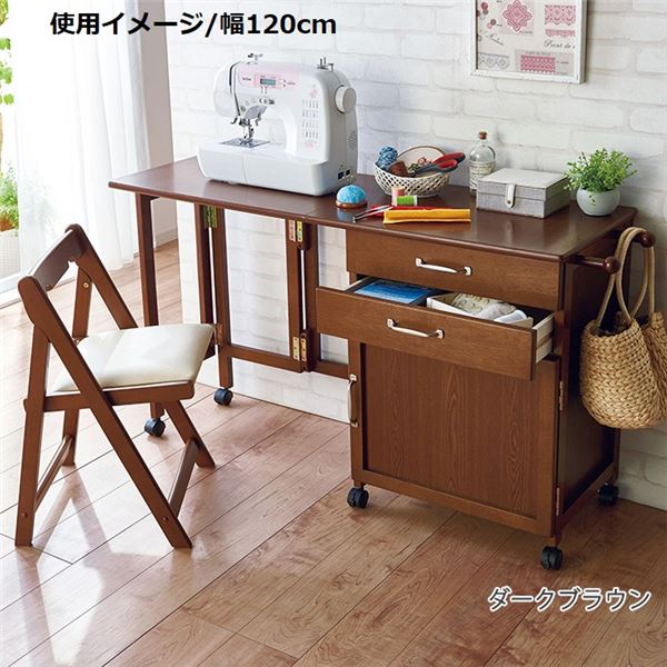 ■サイズ・色違い・関連商品■幅70cm ダークブラウン■幅70cm ナチュラル■幅88cm ダークブラウン■幅88cm ナチュラル■幅120cm ダークブラウン■幅120cm ナチュラル[当ページ]関連商品の検索結果一覧はこちら■商品内容◎天然木(天板除く)◎完成品(キャスター・フックのみお客様取り付け)◎チェアも一緒にコンパクトにたためます■商品スペック■ サイズ(約)デスク/幅120×奥行40×高さ71cm、折りたたみ時:幅62×奥行40×高さ71cmチェア/幅40×奥行43×高さ64cm(座面高41cm)、折りたたみ時:幅40×奥行71×高さ8cm■ カラーナチュラル■ 品質デスク/天板:繊維板(転写プリント)、その他:天然木ラバーウッド材(ラッカー塗装)チェア/フレーム:天然木ラバーウッド材、張地:合成皮革、キャスター:ポリプロピレン■ 生産国ベトナム製※デスクキャスター、フックのみお客様取り付け【特記事項】画像のカラー・サイズとは異なる場合がございます。